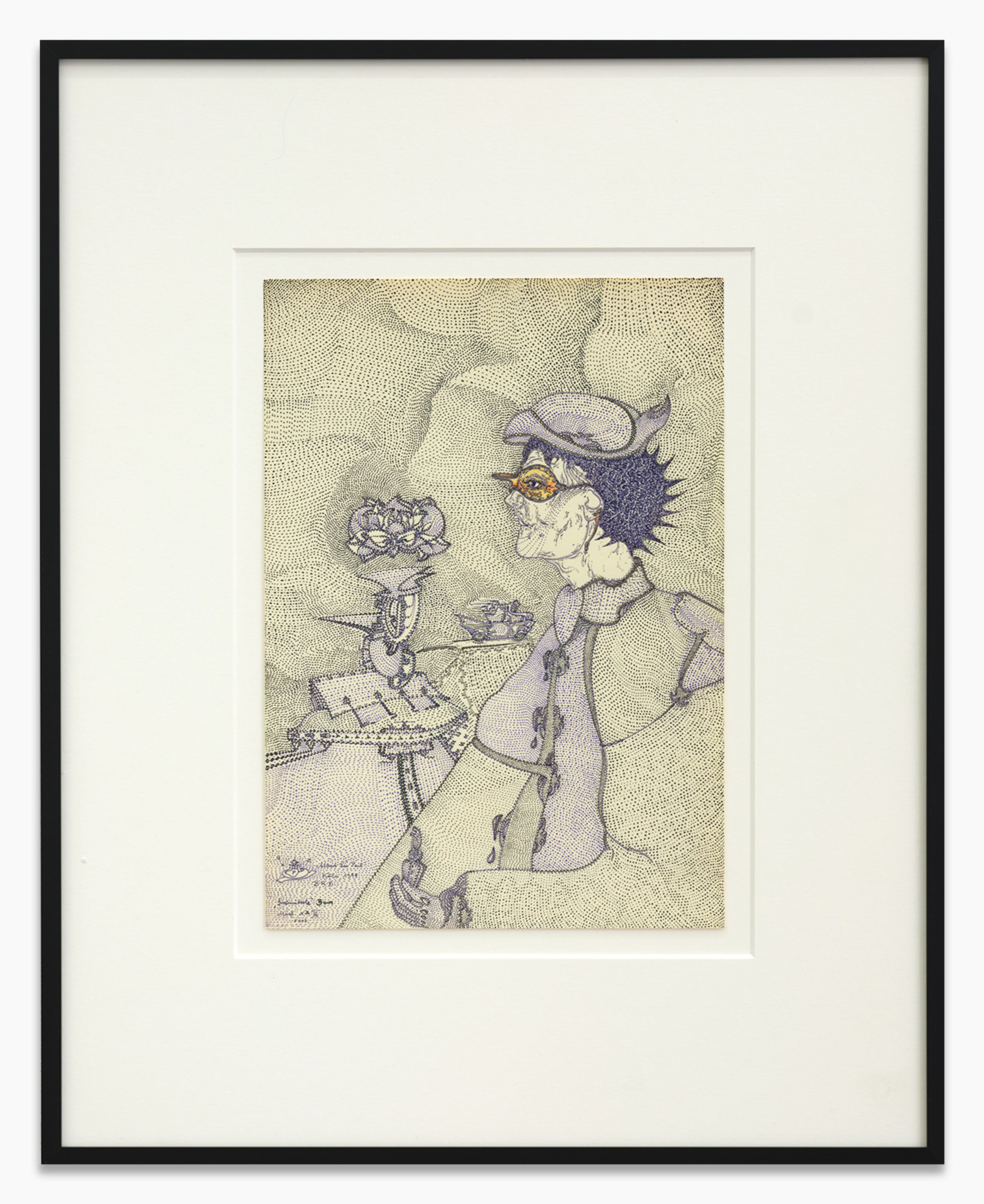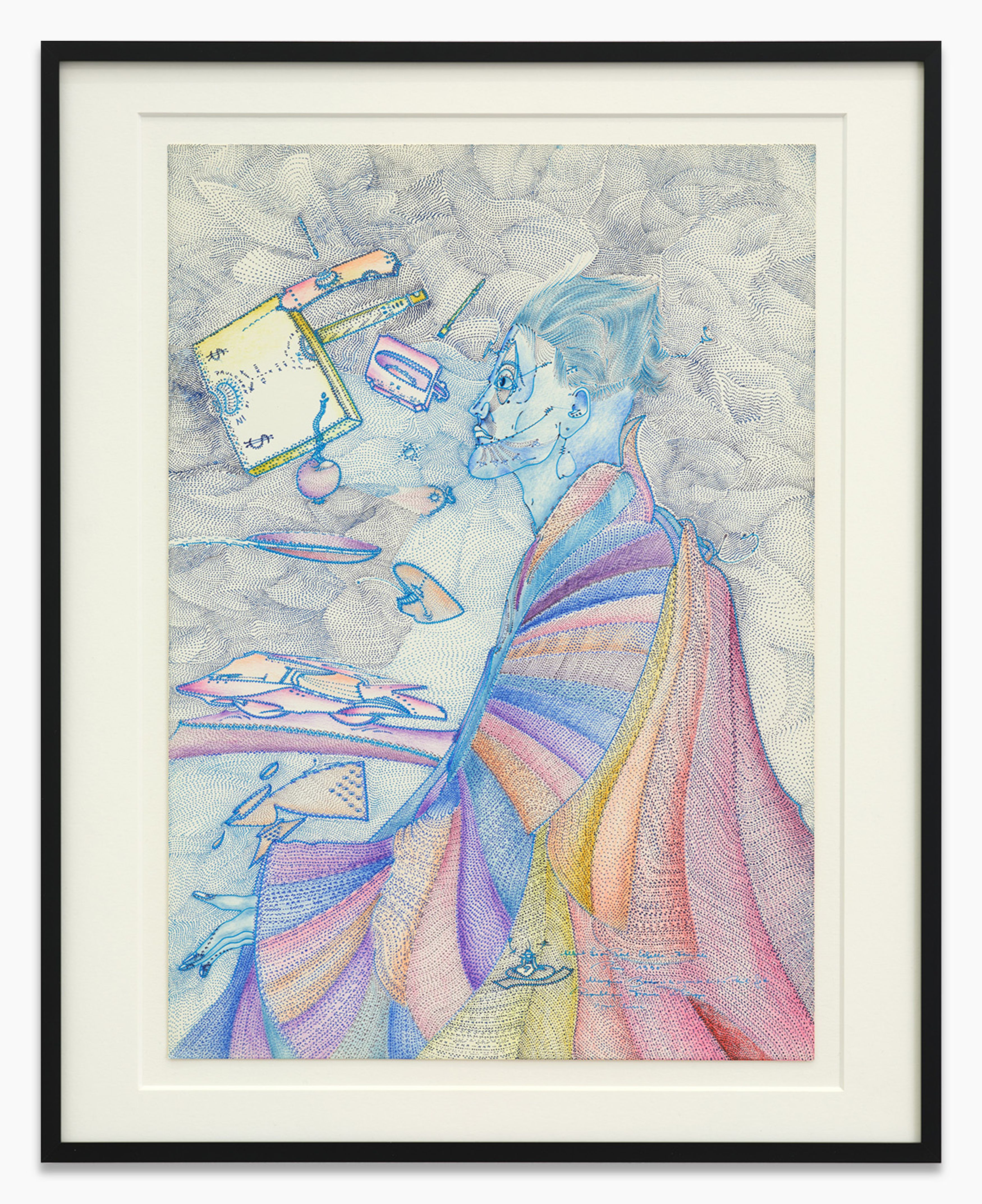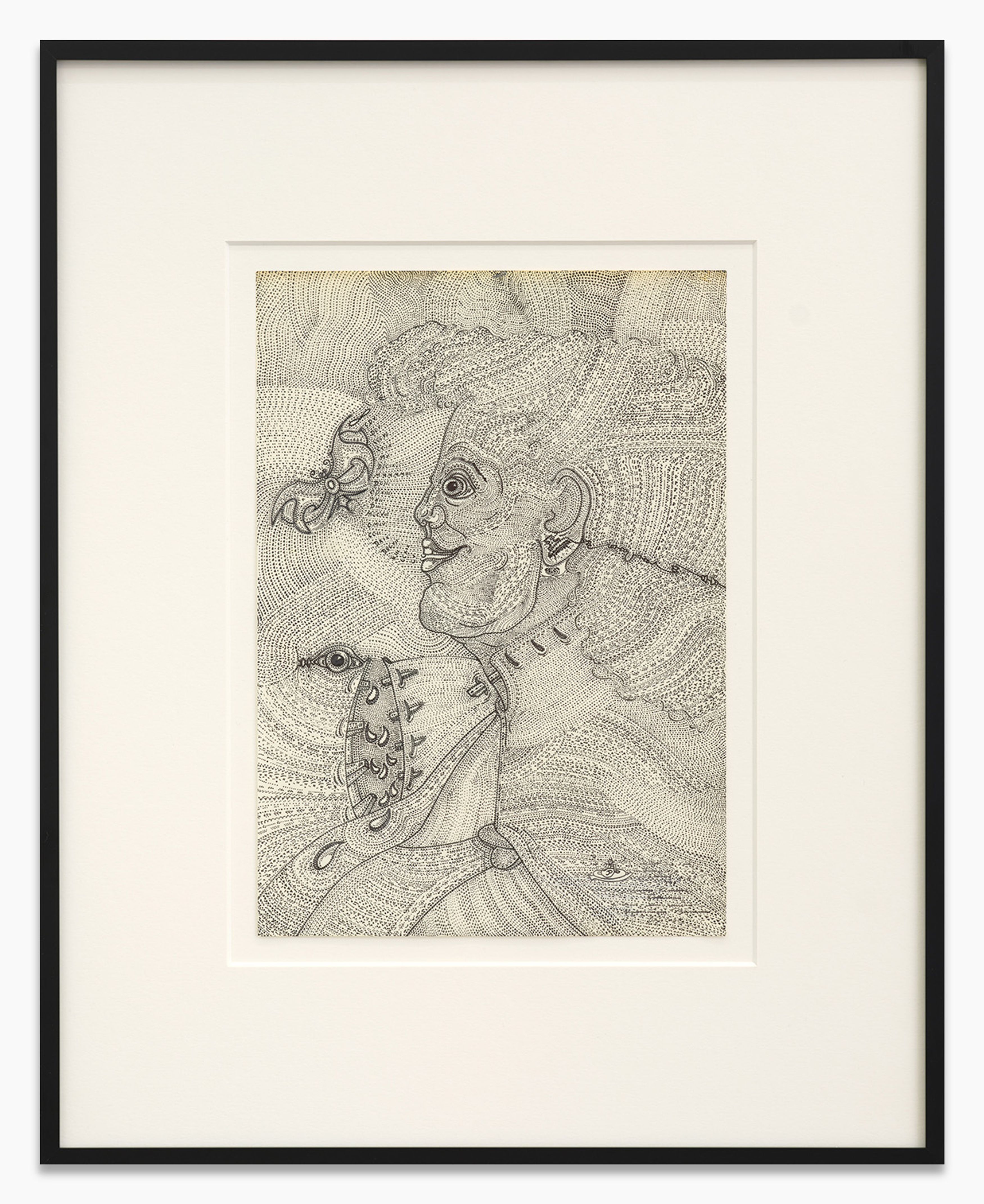 Opening: September 9, 5–7pm Kenneth Bergfeld & Albert Leo Peil Jan Kaps offsite at 535 West 22nd St, 3rd floor, New York, NY September 10 – September 26, 2025 Visiting hours: Mon–Fri, 10am–5pm (by appointment only) With special thanks to Schwartzman& Jan Kaps is pleased to present the largest exhibition to date in New York of works by Kenneth Bergfeld and Albert Leo Peil. Kenneth Bergfeld’s (born 1990, Germany) paintings operate at the intersection of posthumanism, systemic critique, and questions of identity. Drawing on visual traditions ranging from the Old Masters to contemporary digital aesthetics, his layered oil compositions feature avatar-like figures — faces obscured, hair rendered as both helmet and halo — suggesting a persistent tension between visibility and withdrawal. These ambiguous personae inhabit metaphysical, post-industrial landscapes where fiction and reality intermingle. Their partial concealment reflects poststructuralist understandings of the self as fluid, unfixed, and continually shaped by systems of power, language, and image. Bergfeld’s technically virtuosic compositions frequently collapse linearity: multiple timelines, symbolic registers, and cultural references coexist within a single canvas. This fragmentation of spatial and temporal continuity echoes the disorienting simultaneity of the digital age. By fusing sacred iconography, the illusionistic depth of Western painting, and the flatness of post-digital image culture, Bergfeld positions the pictorial surface not as a window onto reality, but as a site of ideological construction charged with ambiguity, critique, and encoded meaning. His work ultimately reflects the experience of life in what some theorists have termed a “permanent present” or “ongoing interregnum” — a liminal state between collapsing orders and the uncertain emergence of new ones. Albert Leo Peil (1946–2019, Germany) was a self-taught artist whose visionary practice remained largely unrecognized during his lifetime. Working outside the centers of the art world in the small Bavarian town of Lauf an der Pegnitz, he developed a deeply personal and idiosyncratic universe — engaging with discourses around gender, queerness, and identity well ahead of his time. Spanning drawing, embossed copper works, and costume design, Peil’s oeuvre explores desire and transformation through a private cosmology of mythical beings, cultural archetypes, and futuristic architectural Entwürfe. This exhibition marks the first presentation of his work in the United States. The meticulously detailed ink drawings on view — dating from 1979 to 1993 — are populated by androgynous, hermaphroditic figures situated in symbolically charged, tectonic landscapes. These stylized characters range from anonymous archetypes to cultural icons of the past and present, as well as entirely fictitious beings of Peil’s invention. Their identities and attributes are often revealed through poetic, elaborate titles inscribed in ornamental cursive on the front of each work, functioning not merely as captions but as integral components of the composition itself. Some works are accompanied on the verso by painstakingly manicured notations ranging from personal comments to excerpts of poems and streams of consciousness, representing a profound exploration of queer identities beyond the rigid gender norms of his time. Costume plays a central role in this exploration: not only as visual motif, but also as a critical device. Transcending temporal boundaries, Peil's characters appear in baroque robes, liturgical capes, knights’ armor, and sci-fi-inspired headgear, alongside elements drawn from high couture. Throughout, clothing serves as a site of identity construction and self-invention, collapsing distinctions between historical reference, fantasy, and personal mythology. Alluding to the tradition of camp and the notion of the Gesamtkunstwerk, Peil also created elaborate faux-fur and velour garments that he reportedly wore in public — an exploration that dared to move beyond the imagined into lived reality, as he physically placed himself within the larger context of his work, casting himself as an active participant in a lifelong quest for becoming.