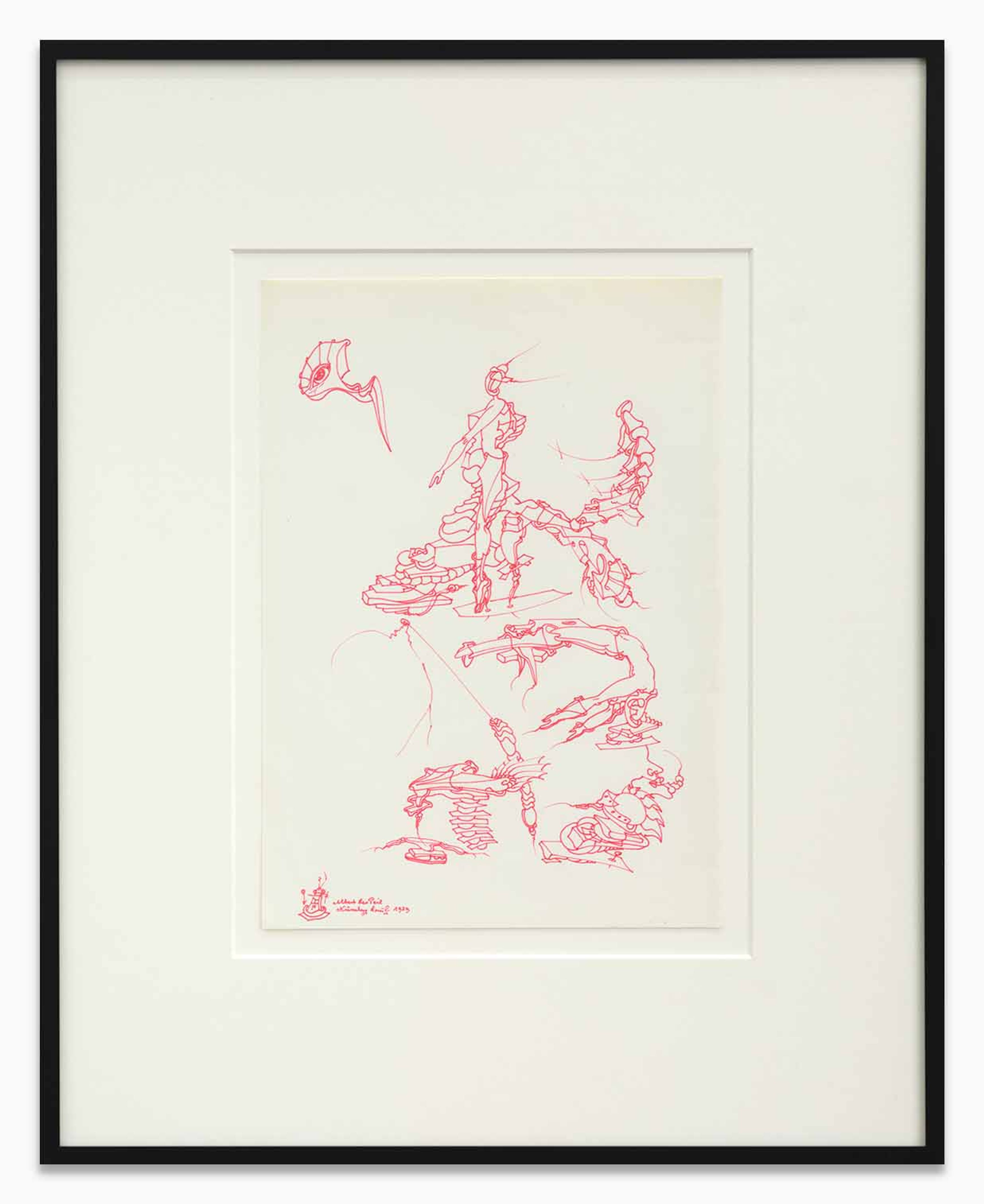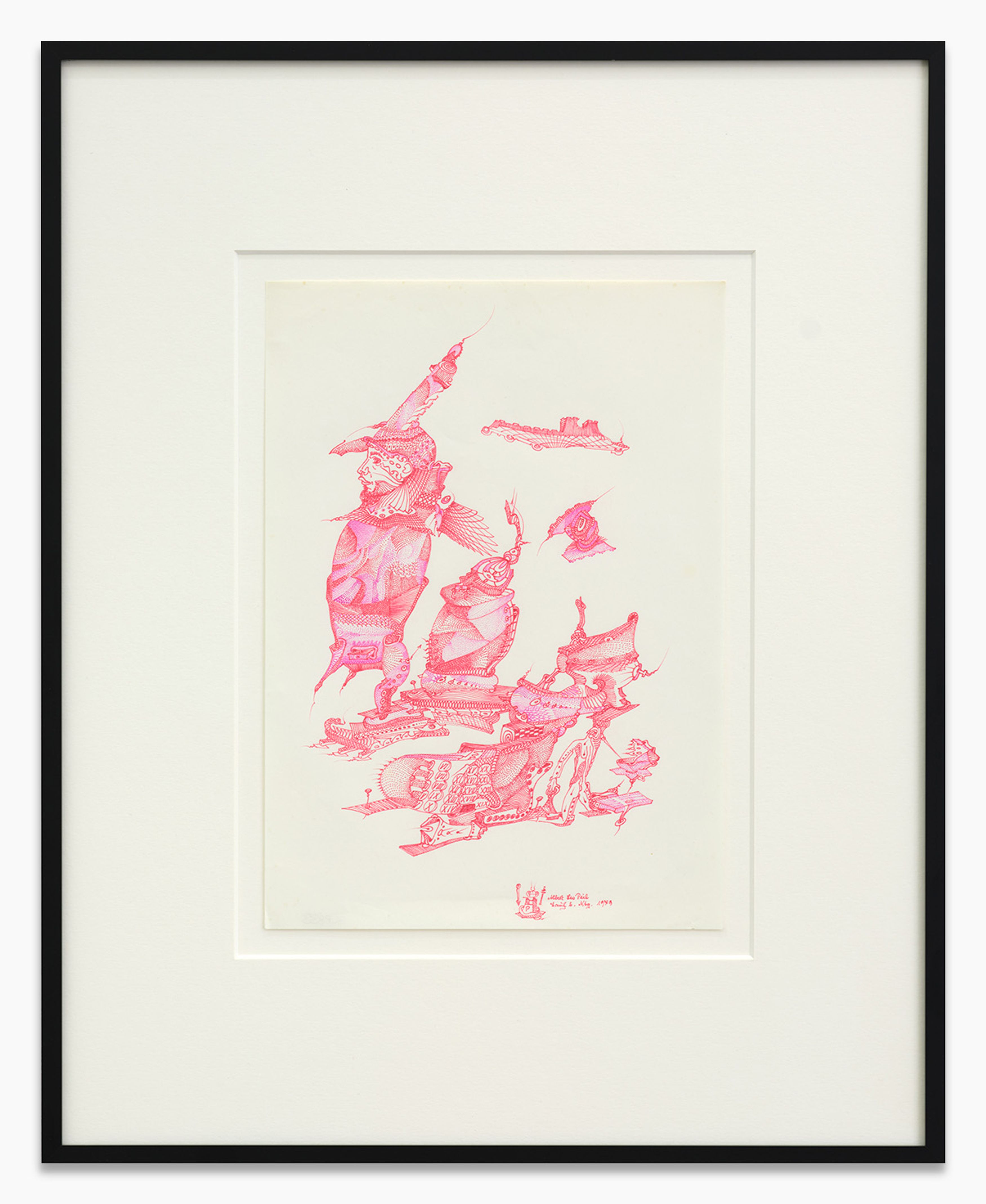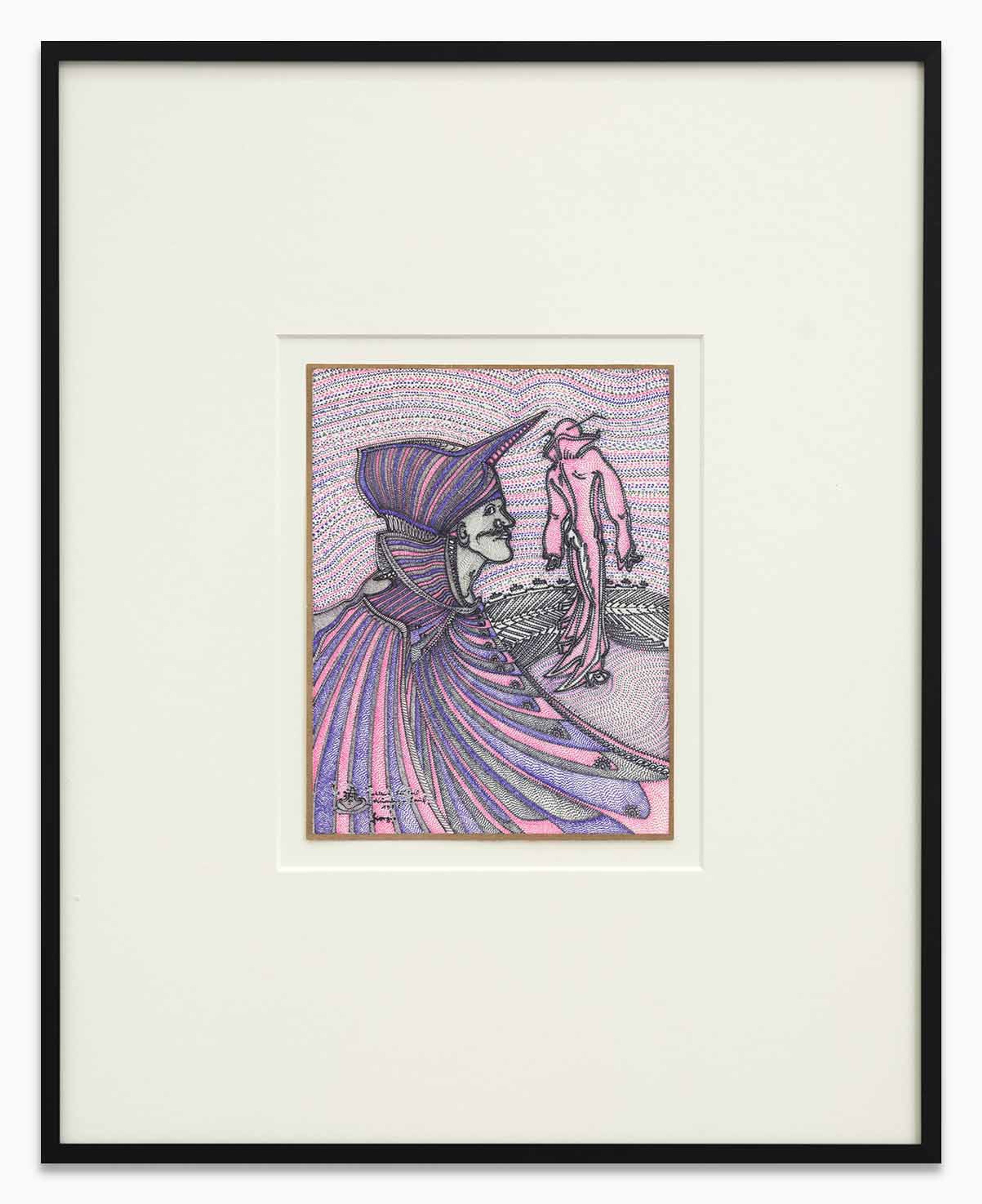 Opening: September 9, 5–7pm Kenneth Bergfeld & Albert Leo Peil Jan Kaps offsite at 535 West 22nd St, 3rd floor, New York, NY September 10 – September 26, 2025 Visiting hours: Mon–Fri, 10am–5pm (by appointment only) With special thanks to Schwartzman& Jan Kaps is pleased to present the largest exhibition to date in New York of works by Kenneth Bergfeld and Albert Leo Peil. Kenneth Bergfeld’s (born 1990, Germany) paintings operate at the intersection of posthumanism, systemic critique, and questions of identity. Drawing on visual traditions ranging from the Old Masters to contemporary digital aesthetics, his layered oil compositions feature avatar-like figures — faces obscured, hair rendered as both helmet and halo — suggesting a persistent tension between visibility and withdrawal. These ambiguous personae inhabit metaphysical, post-industrial landscapes where fiction and reality intermingle. Their partial concealment reflects poststructuralist understandings of the self as fluid, unfixed, and continually shaped by systems of power, language, and image. Bergfeld’s technically virtuosic compositions frequently collapse linearity: multiple timelines, symbolic registers, and cultural references coexist within a single canvas. This fragmentation of spatial and temporal continuity echoes the disorienting simultaneity of the digital age. By fusing sacred iconography, the illusionistic depth of Western painting, and the flatness of post-digital image culture, Bergfeld positions the pictorial surface not as a window onto reality, but as a site of ideological construction charged with ambiguity, critique, and encoded meaning. His work ultimately reflects the experience of life in what some theorists have termed a “permanent present” or “ongoing interregnum” — a liminal state between collapsing orders and the uncertain emergence of new ones. Albert Leo Peil (1946–2019, Germany) was a self-taught artist whose visionary practice remained largely unrecognized during his lifetime. Working outside the centers of the art world in the small Bavarian town of Lauf an der Pegnitz, he developed a deeply personal and idiosyncratic universe — engaging with discourses around gender, queerness, and identity well ahead of his time. Spanning drawing, embossed copper works, and costume design, Peil’s oeuvre explores desire and transformation through a private cosmology of mythical beings, cultural archetypes, and futuristic architectural Entwürfe. This exhibition marks the first presentation of his work in the United States. The meticulously detailed ink drawings on view — dating from 1979 to 1993 — are populated by androgynous, hermaphroditic figures situated in symbolically charged, tectonic landscapes. These stylized characters range from anonymous archetypes to cultural icons of the past and present, as well as entirely fictitious beings of Peil’s invention. Their identities and attributes are often revealed through poetic, elaborate titles inscribed in ornamental cursive on the front of each work, functioning not merely as captions but as integral components of the composition itself. Some works are accompanied on the verso by painstakingly manicured notations ranging from personal comments to excerpts of poems and streams of consciousness, representing a profound exploration of queer identities beyond the rigid gender norms of his time. Costume plays a central role in this exploration: not only as visual motif, but also as a critical device. Transcending temporal boundaries, Peil's characters appear in baroque robes, liturgical capes, knights’ armor, and sci-fi-inspired headgear, alongside elements drawn from high couture. Throughout, clothing serves as a site of identity construction and self-invention, collapsing distinctions between historical reference, fantasy, and personal mythology. Alluding to the tradition of camp and the notion of the Gesamtkunstwerk, Peil also created elaborate faux-fur and velour garments that he reportedly wore in public — an exploration that dared to move beyond the imagined into lived reality, as he physically placed himself within the larger context of his work, casting himself as an active participant in a lifelong quest for becoming.