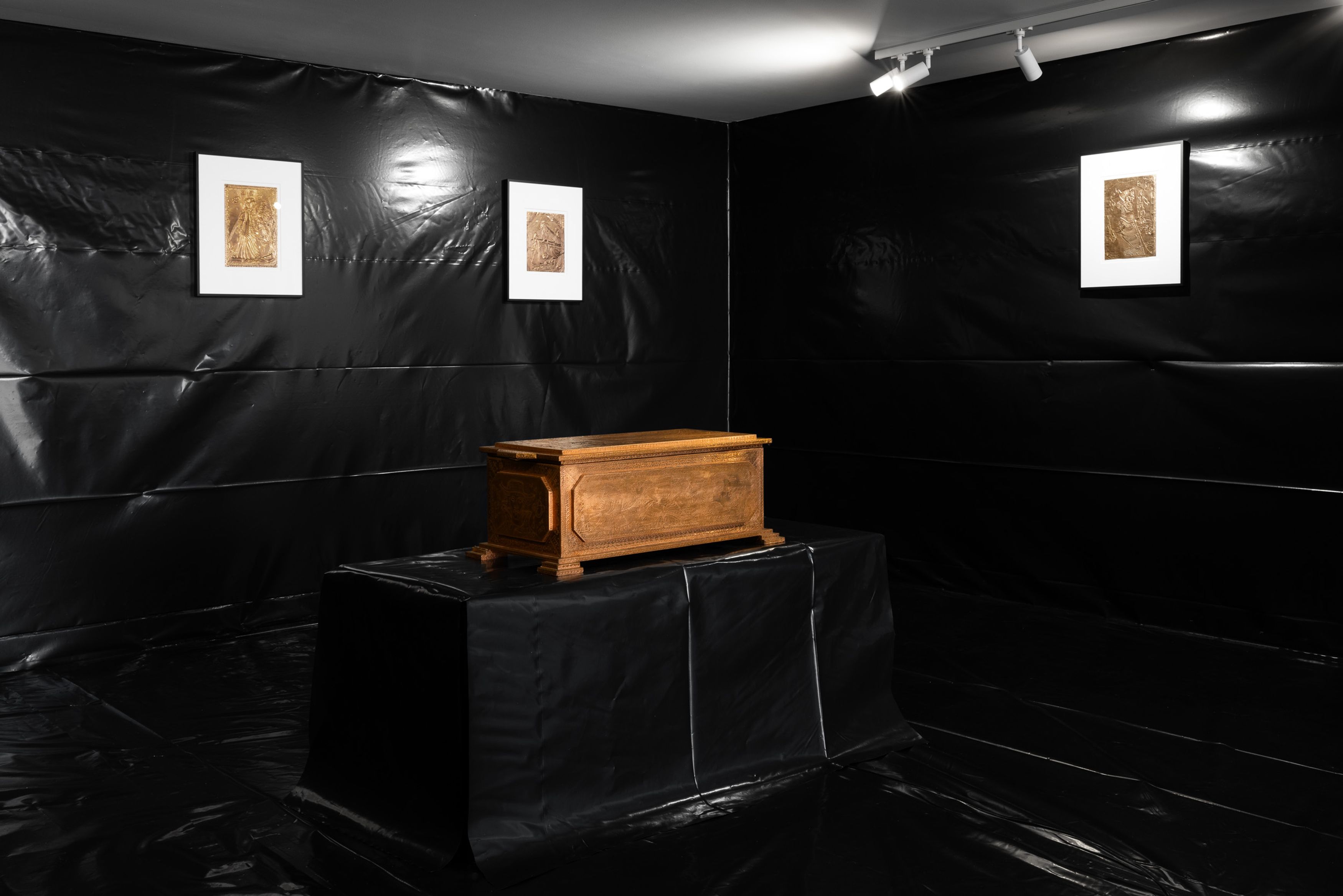 The artist‘s relationship with copper is almost alchemical. Through etching, corrosion, and hammering, the metal transforms into a time archive, its surfa- ces accruing depth, memories, and traces that emerge as light interacts with matter. In experimenting with the physical and chemi- cal properties of his materials, he reveals the latent transformations hidden within them.