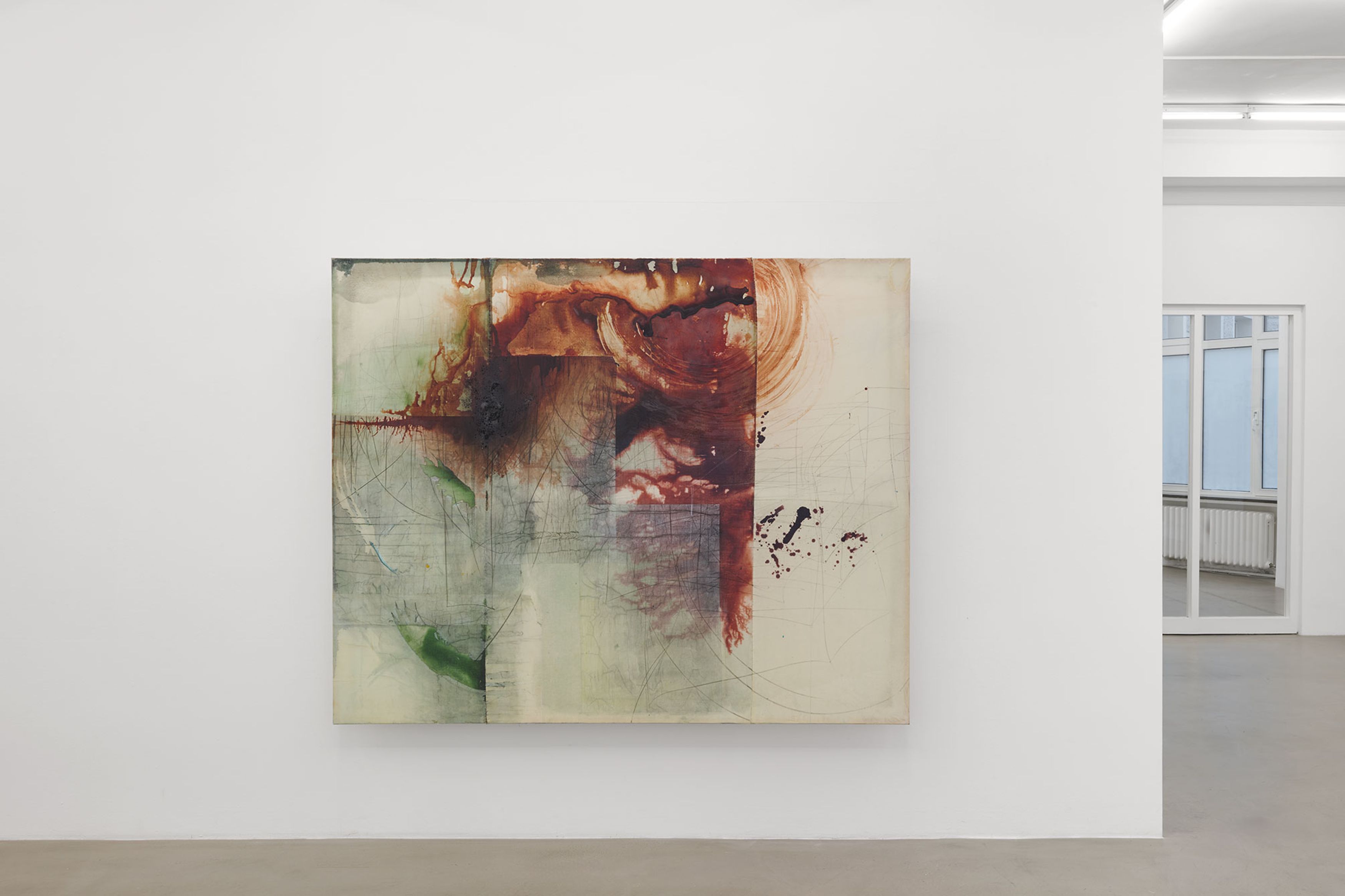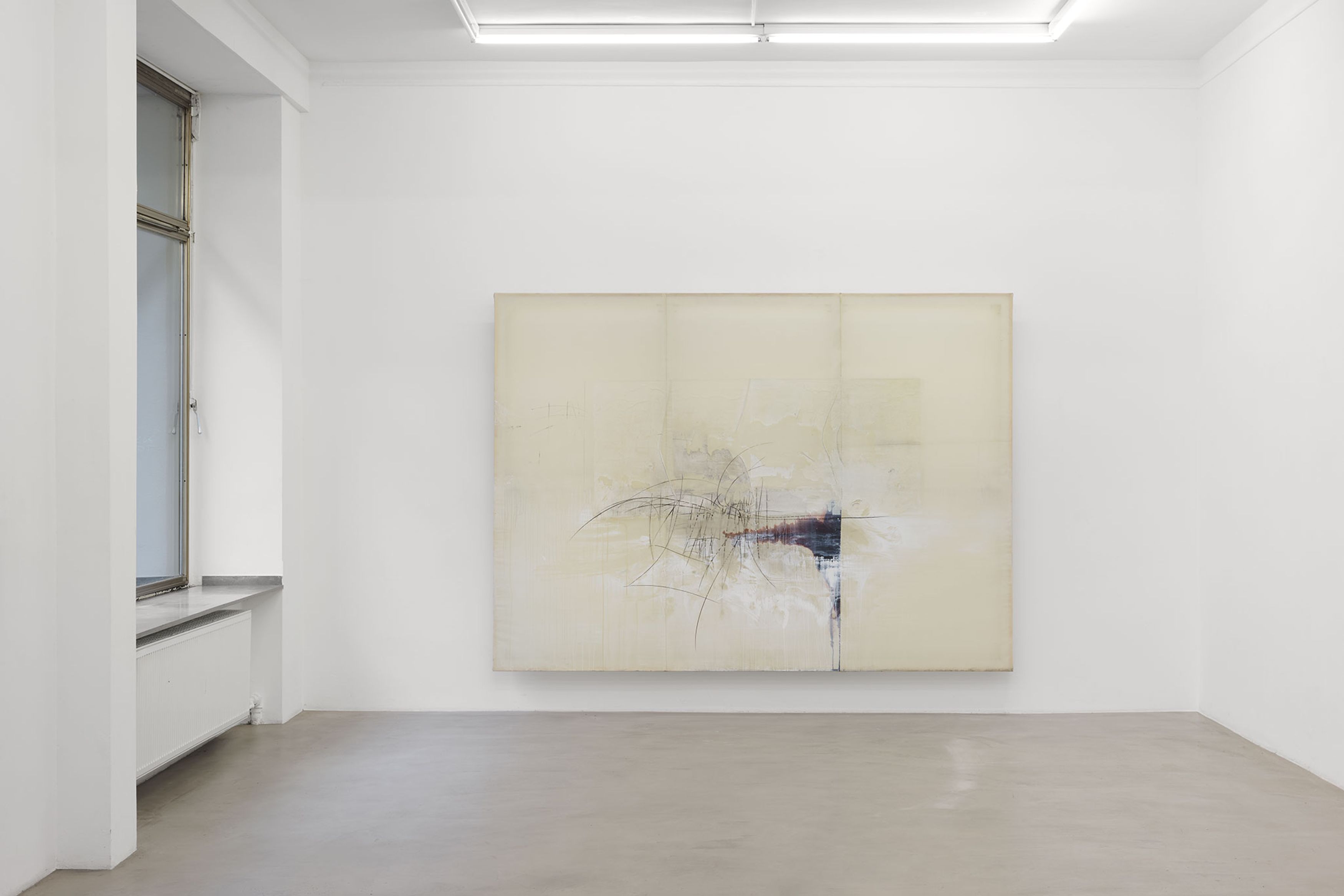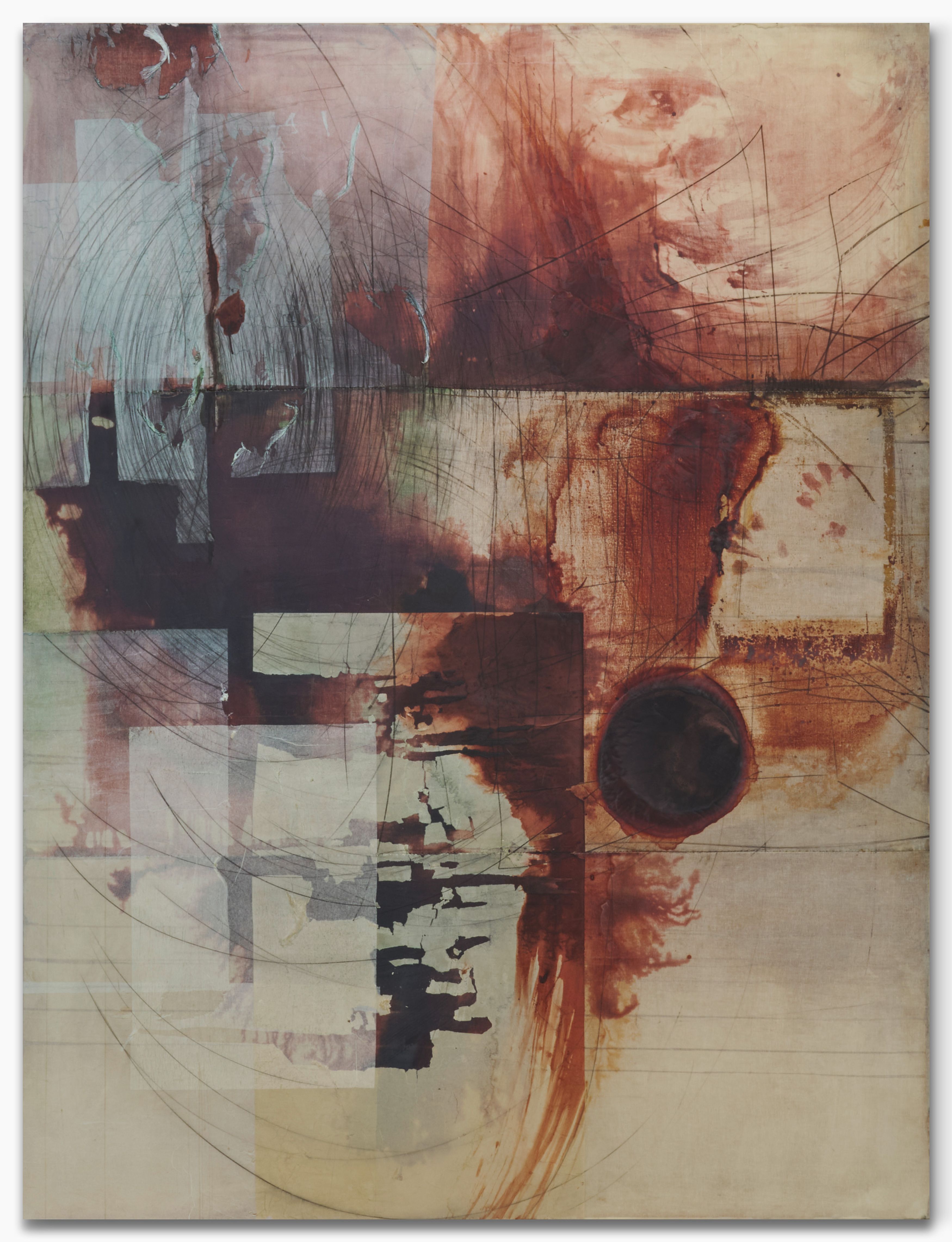 Sometimes a passage beneath the skin of the paint. Often the bursting of a kind of sludge, a primordial mud, an amniotic fluid of this very painting, in the courage of the gesture. Is more needed on the surface to become the place that simultaneously affirms and denies, a place that is polyphonic by nature, an incantatory place where opposing charges, inverse ponderations, even adverse temperatures are organized? A painting that is undoubtedly visceral, where depths encounter inhospitable air, where lava freezes and splits in the cold of ether. Minh Lan Tran’s painting carries a set of contradictions, of incompatibilities, like the grammatical phenomena of sentences on the verge of semantic coherence, quotations erasing their traces as they advance, the totalizing magnet, the desire for worlds, which the situating power of doing never ceases to deny. On this ridge: there always seems to be something in Minh Lan Tran’s painting that is in gestation, in the making. She speaks with ease of her responsibility to generate energy, to stand on the side of the living, to do nothing that seems dead, even if—contradiction again—no layer is pronounced without there being subsequent negation, damage, or reprobation of that layer. To undo the gesture is to complete it. It is likely that Minh Lan Tran’s mind will never repay this fundamental debt to the antipodes, the opposites of reality.