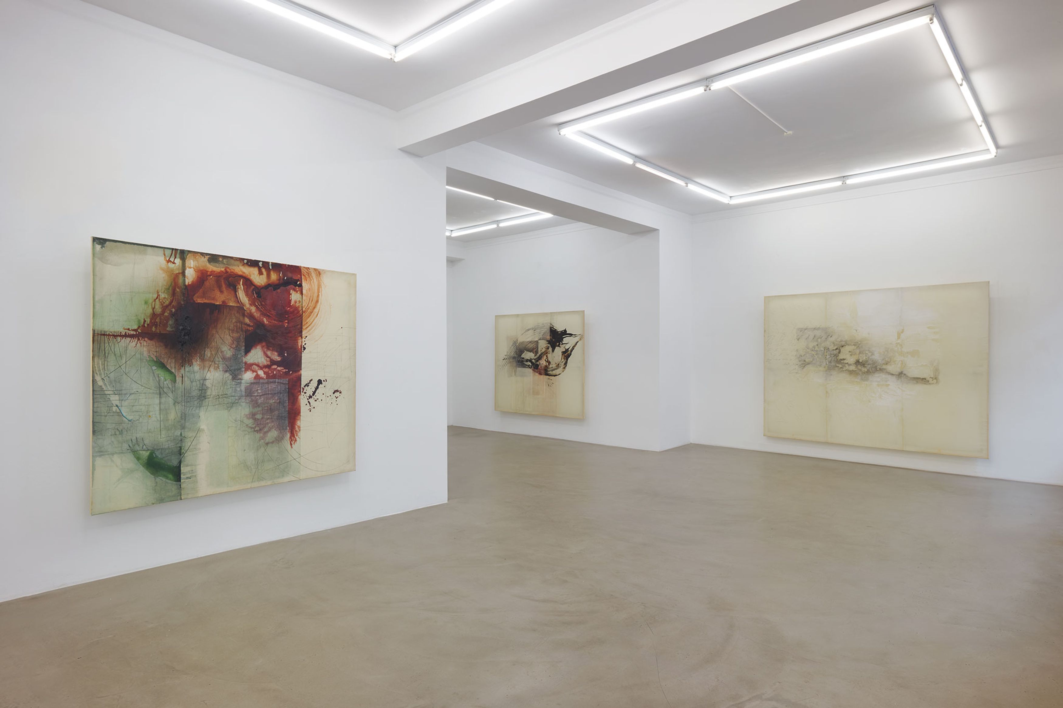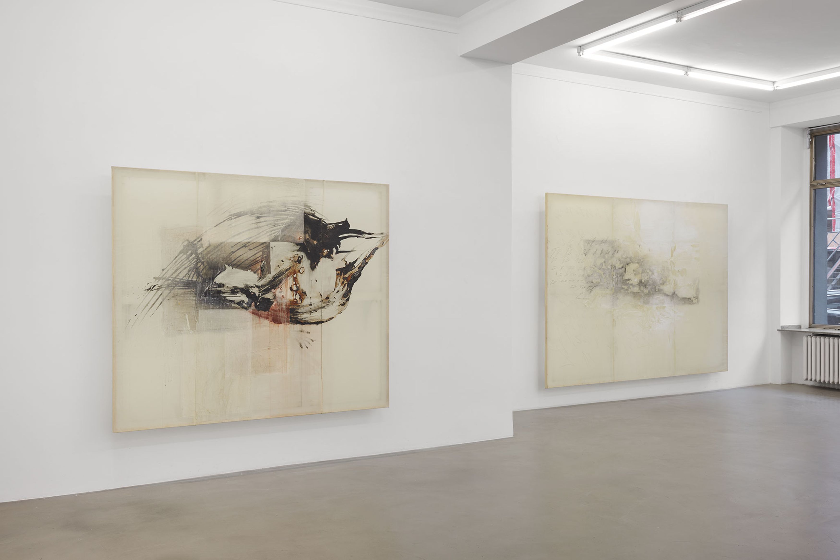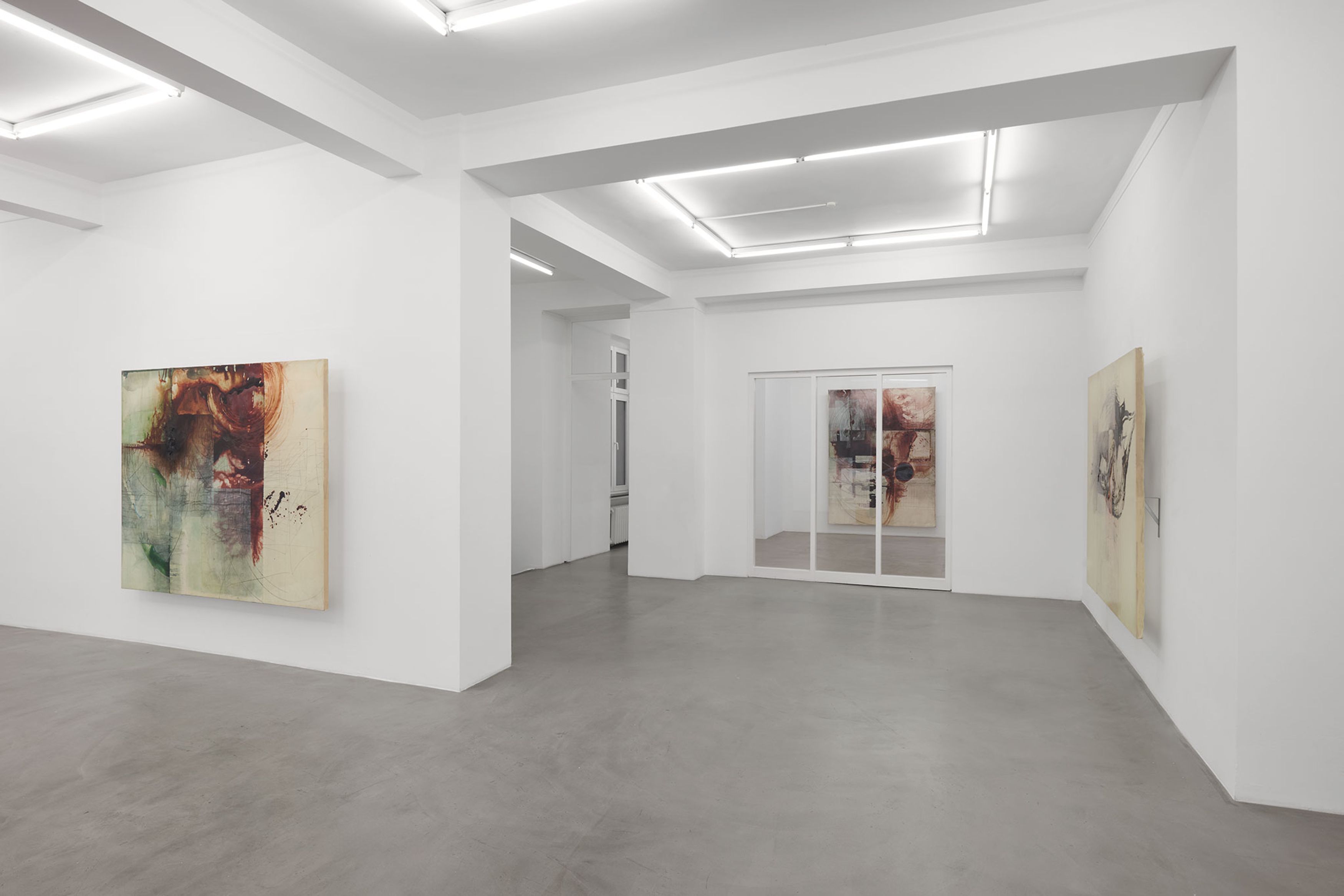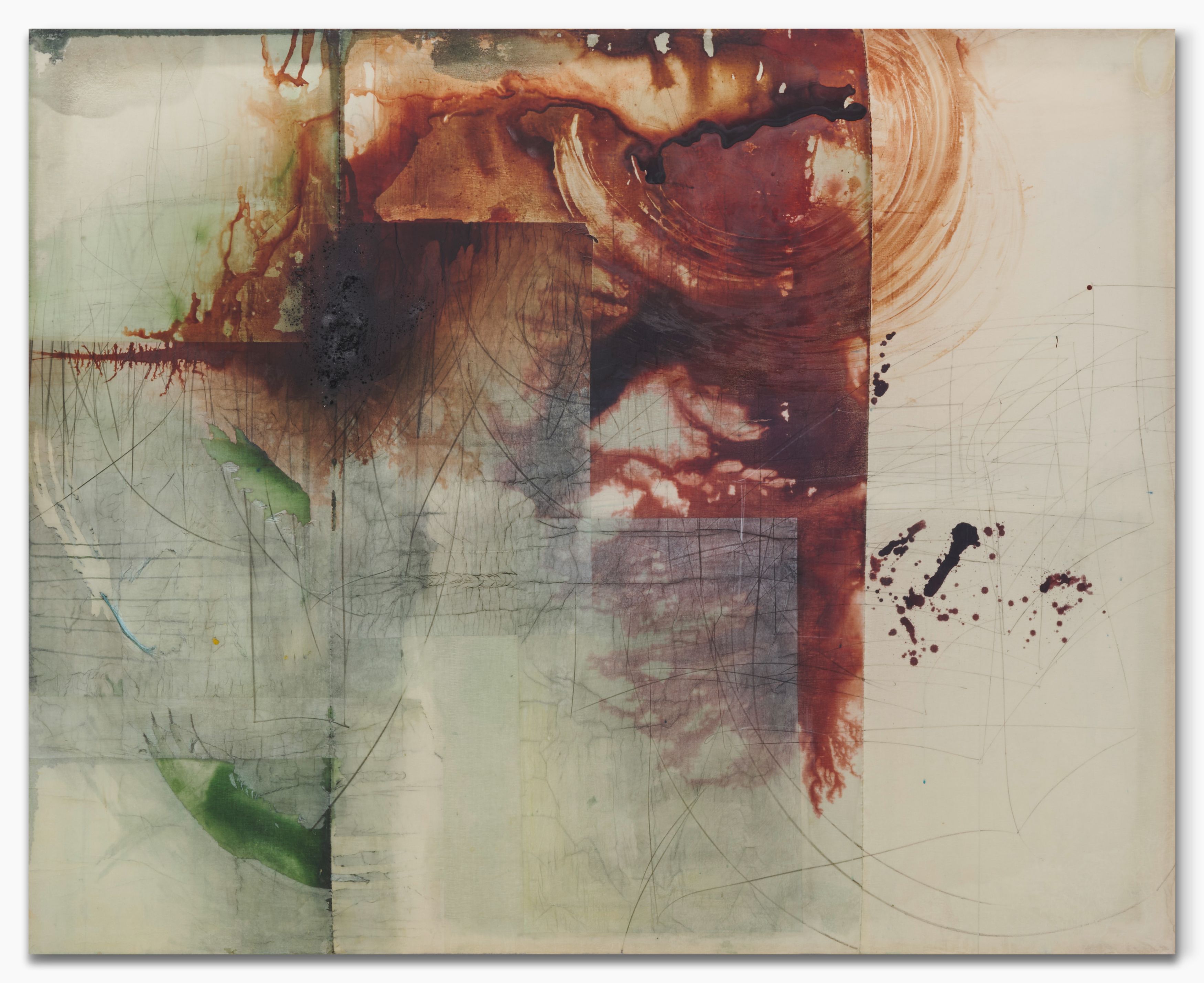 Sometimes a passage beneath the skin of the paint. Often the bursting of a kind of sludge, a primordial mud, an amniotic fluid of this very painting, in the courage of the gesture. Is more needed on the surface to become the place that simultaneously affirms and denies, a place that is polyphonic by nature, an incantatory place where opposing charges, inverse ponderations, even adverse temperatures are organized? A painting that is undoubtedly visceral, where depths encounter inhospitable air, where lava freezes and splits in the cold of ether. Minh Lan Tran’s painting carries a set of contradictions, of incompatibilities, like the grammatical phenomena of sentences on the verge of semantic coherence, quotations erasing their traces as they advance, the totalizing magnet, the desire for worlds, which the situating power of doing never ceases to deny. On this ridge: there always seems to be something in Minh Lan Tran’s painting that is in gestation, in the making. She speaks with ease of her responsibility to generate energy, to stand on the side of the living, to do nothing that seems dead, even if—contradiction again—no layer is pronounced without there being subsequent negation, damage, or reprobation of that layer. To undo the gesture is to complete it. It is likely that Minh Lan Tran’s mind will never repay this fundamental debt to the antipodes, the opposites of reality.