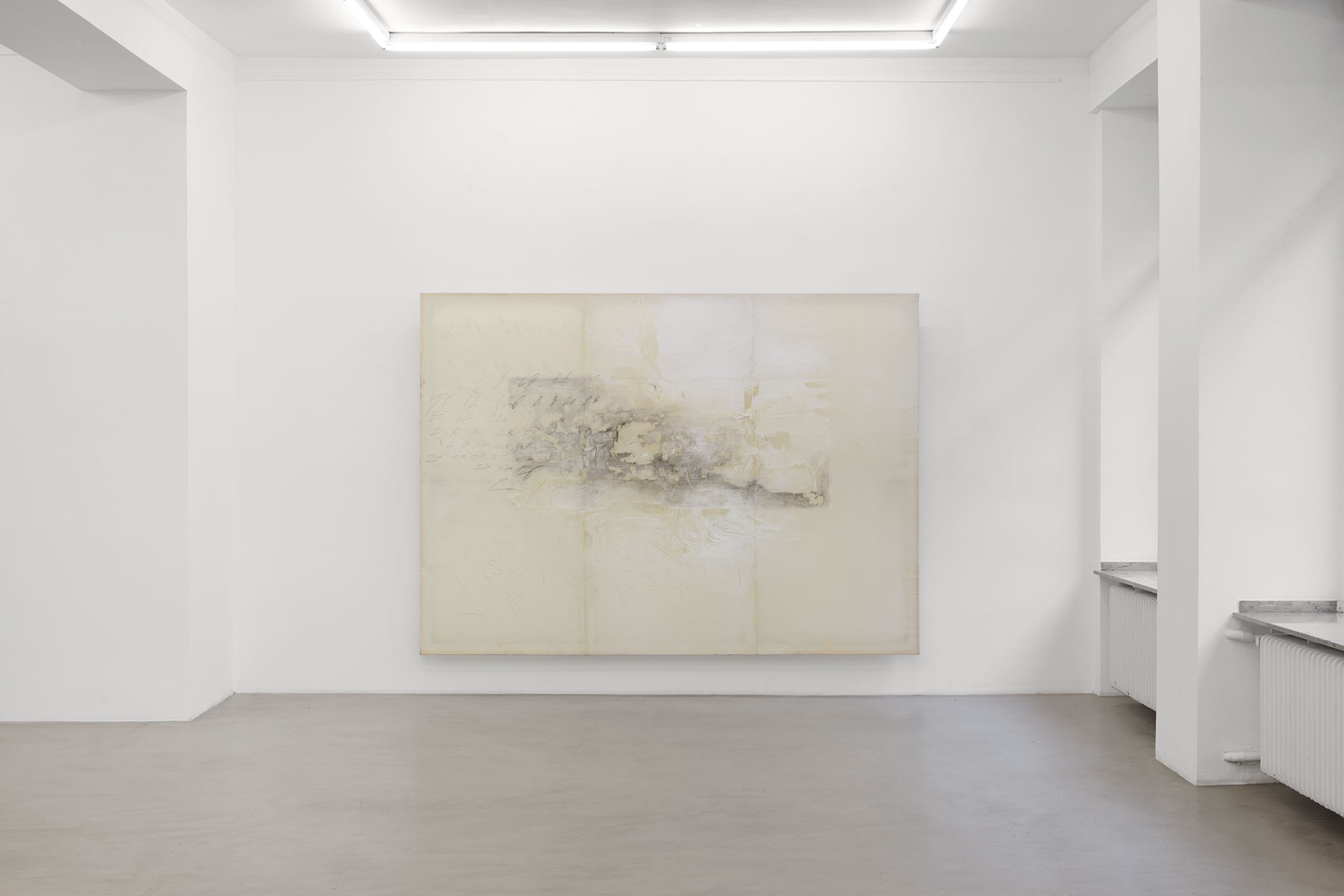 In this vein: she draws to the surface of her painting the extension of an experience, the trail of a memory that resists oblivion (as this or that reference will indicate), just as she calls for a plasmatic future, a future that is still warm, malleable, on the verge of finding its definitive form in the present (her interest in the atomic advances of our century, the impacts of a structure as small as the atom and its movements on a whole as large as the world, points in this direction). When moving away from appearances to focus on structural affinities, Minh Lan Tran’s painting resembles an equation with no solution, or with a double solution, which closes the problem at the same time as it celebrates it. Its surface is a place of both permanence and disappearance. It is not surprising that she has long held poetry, which incessantly recaptures language to renew the truth of the world, as a reference point. It is indeed in competition with silence that this painting comes into being; it does not speak, it is a muffled cry, a summons to eternity, profoundly contravened by the vertigo of emptiness and the vestiges of speech. Minh Lan Tran’s painting does not seek fulfillment. This acceptance of her impossibilities, of everything she is unable to do, is somehow Beckettian; it is precisely in this way, in contact with its own limitations, that the living grows. Here again, we come back to something mathematical: the limit of a function that it can only ever approach. The thrill, on this mode, lies in the “infrathin” (the Duchampian “inframince”) that separates an idea from its realization; the seduction resides in this caress.